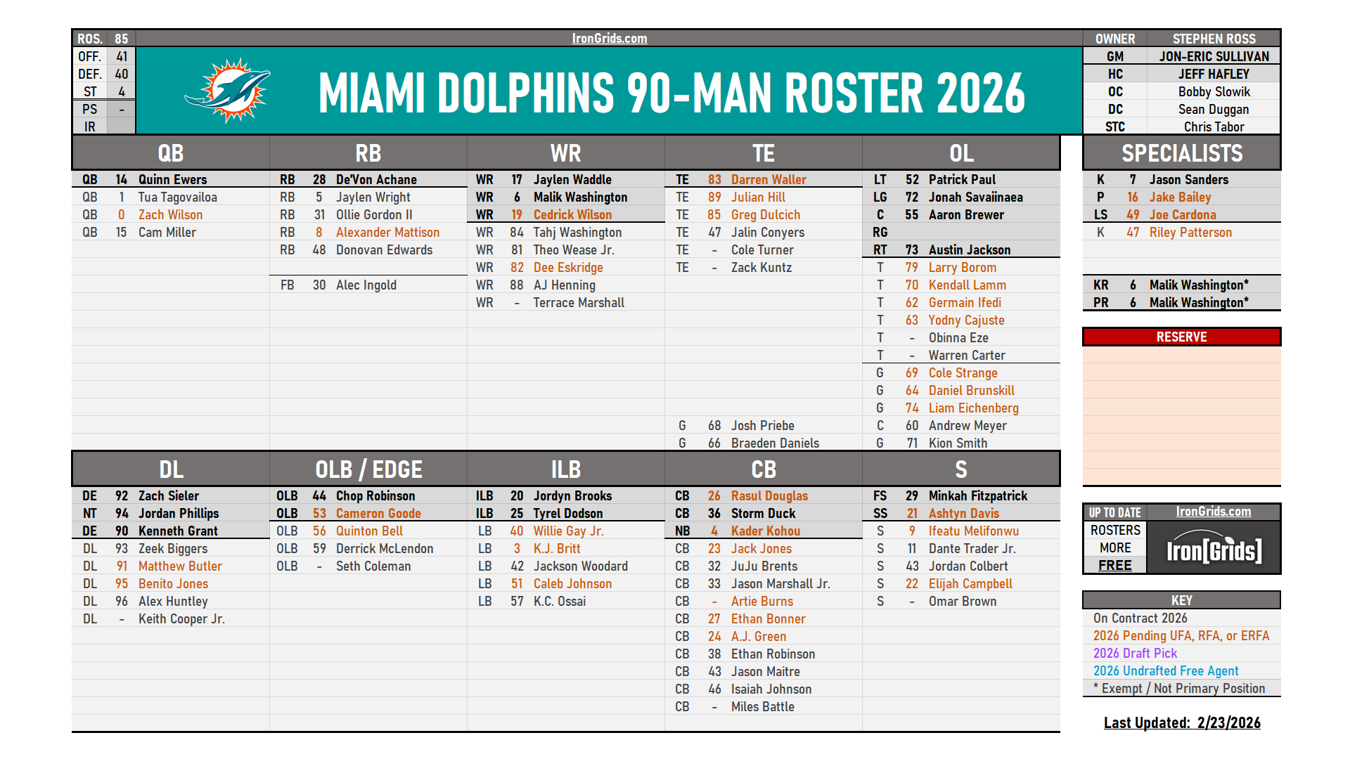 HEADS UP! This page updates once per week every Tuesday. To see the most recent version updated daily & archived rosters, visit our Discord server’s FREE Dolphins Channel: