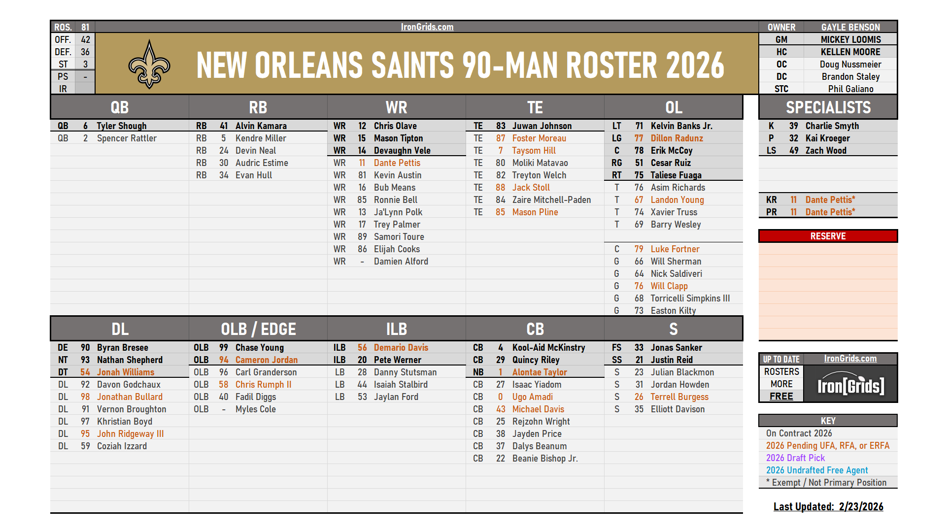 HEADS UP! This page updates once per week every Tuesday. To see the most recent version updated daily & archived rosters, visit our Discord server’s FREE Saints Channel: